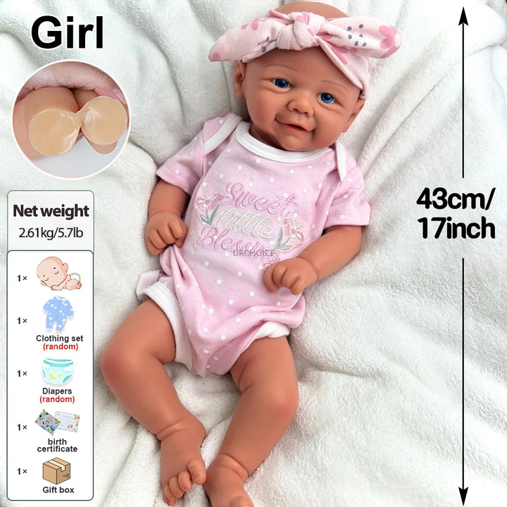 17" Handmade Silicone Reborn Baby Girl Doll with Washable Soft Body & Lifelike Details